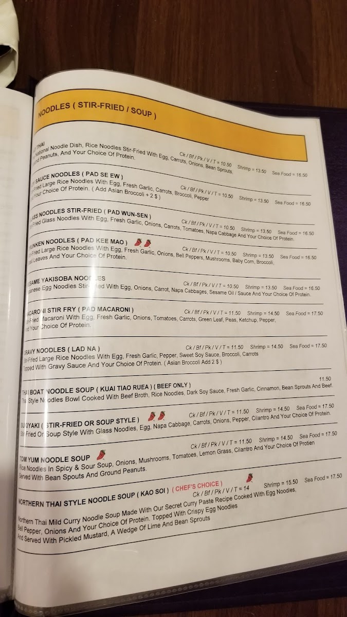 Lunch specials served weekdays between 11 am and 3 pm offer well-rounded meals that include steamed rice and a spring roll, ideal for a midday break or a light afternoon meal. Among the highlights, classic noodle dishes like Pad Thai and Stir-Fried Soy Sauce Noodles stand out with their blend of fresh vegetables, proteins, and authentic Thai seasonings. Fried rice options, including a vibrant Pineapple Fried Rice, provide flavorful, satisfying plates that pair well with the restaurant’s understated, cozy atmosphere.