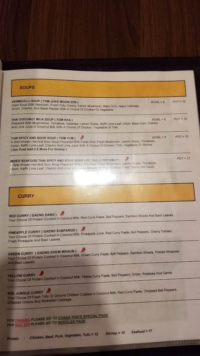 Chada Thai Restaurant offers a thoughtful menu that combines traditional Thai dishes with Asian fusion elements, presenting a balanced selection that suits a casual dining experience. The menu features comforting and familiar favorites alongside more adventurous flavors, making it an inviting choice for both quick lunches and relaxed dinners.